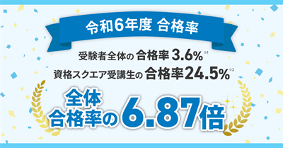 合格率等は、資格スクエアが実施した受講生アンケート結果に基づく。なお、全国平均合格率は3.6%。法務省発表によるもの。